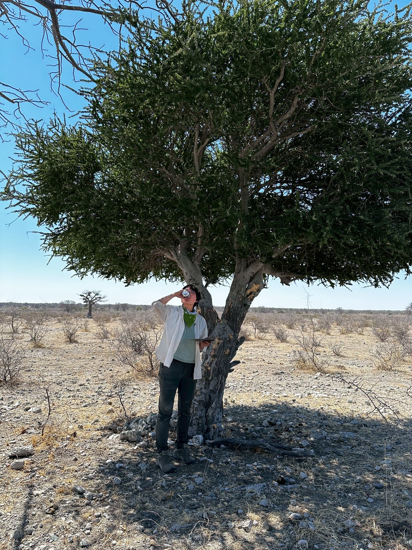 暑くてビールがうまいぜーーー!暑さよりも悪路よりも砂埃よりも乾燥地帯なので動物もいないけれども初めてのボツワナにまだまだテンションMAX!の頃ですねーー!
